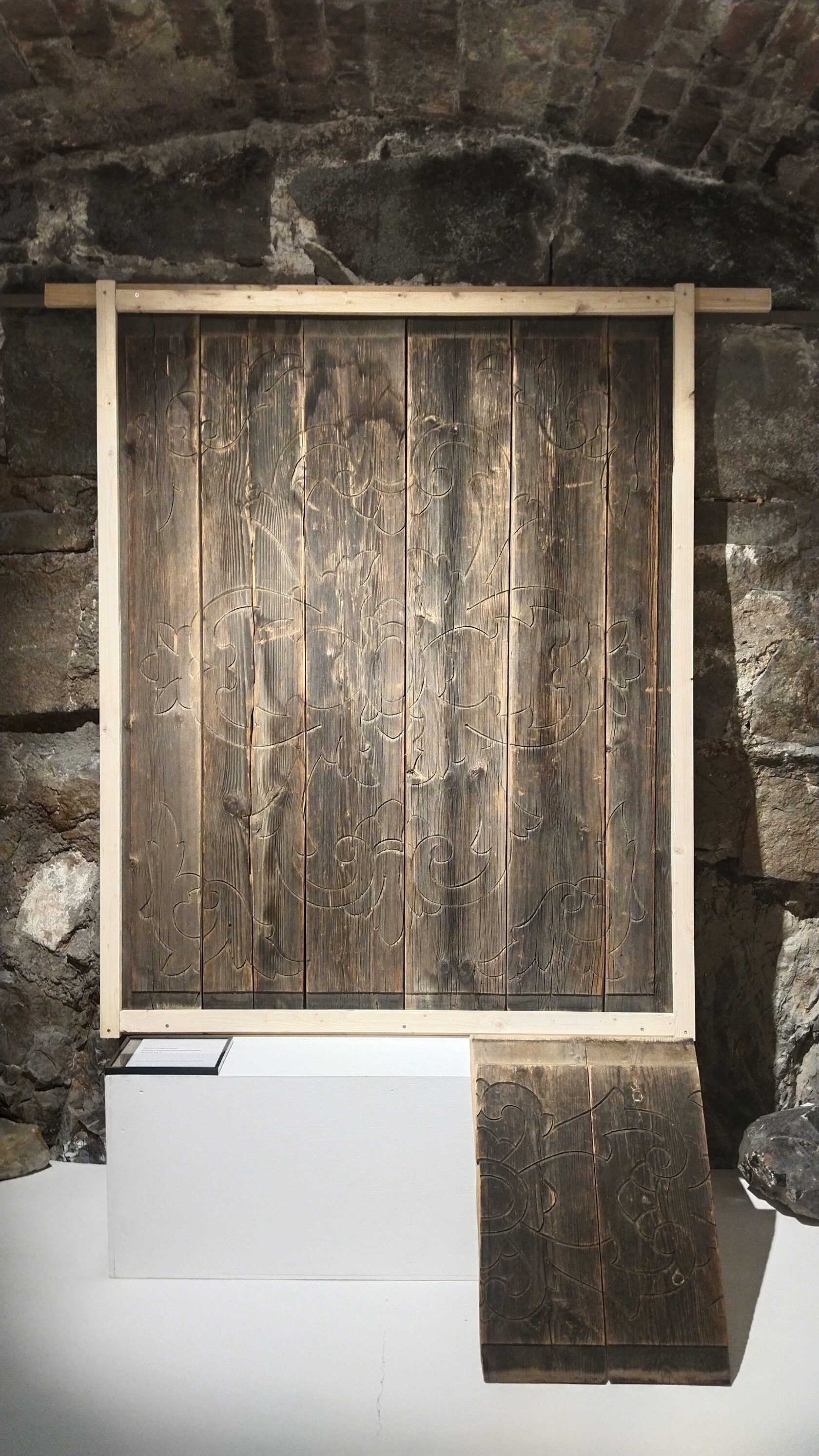 - фондовые экспонаты Музея архитектуры - резной фронтон с фигурами мифических животных и филенка ворот с глухой резьбой в растительных мотивах, которые были отсканированы и воссозданы в 3д-модели студентами лаборатории УрГАХУ "Информационные технологиии в архитектуре"